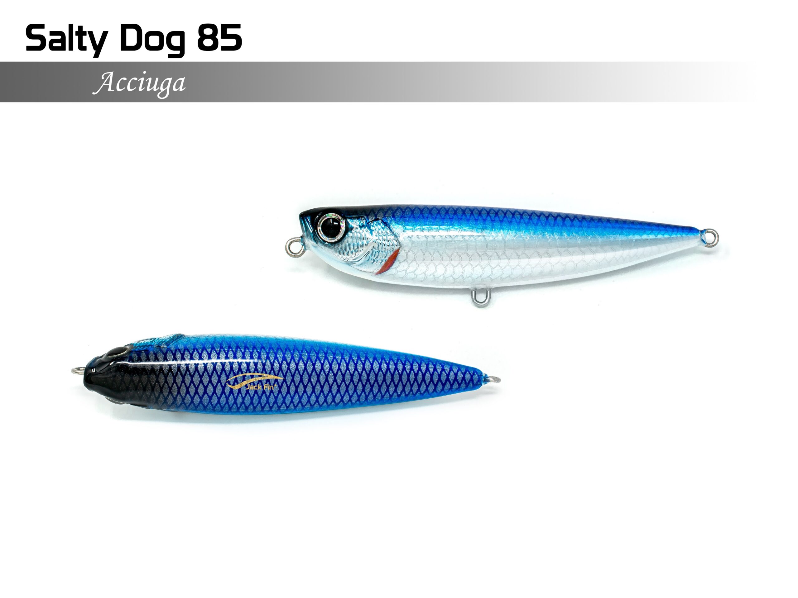 L’esca JackFin Salty Dog 85 è perfetta per pescatori alla ricerca di alte prestazioni, è dotata di un corpo aerodinamico e di una livrea vibrante, che simula in modo estremamente realistico i movimenti di un pesce ferito.